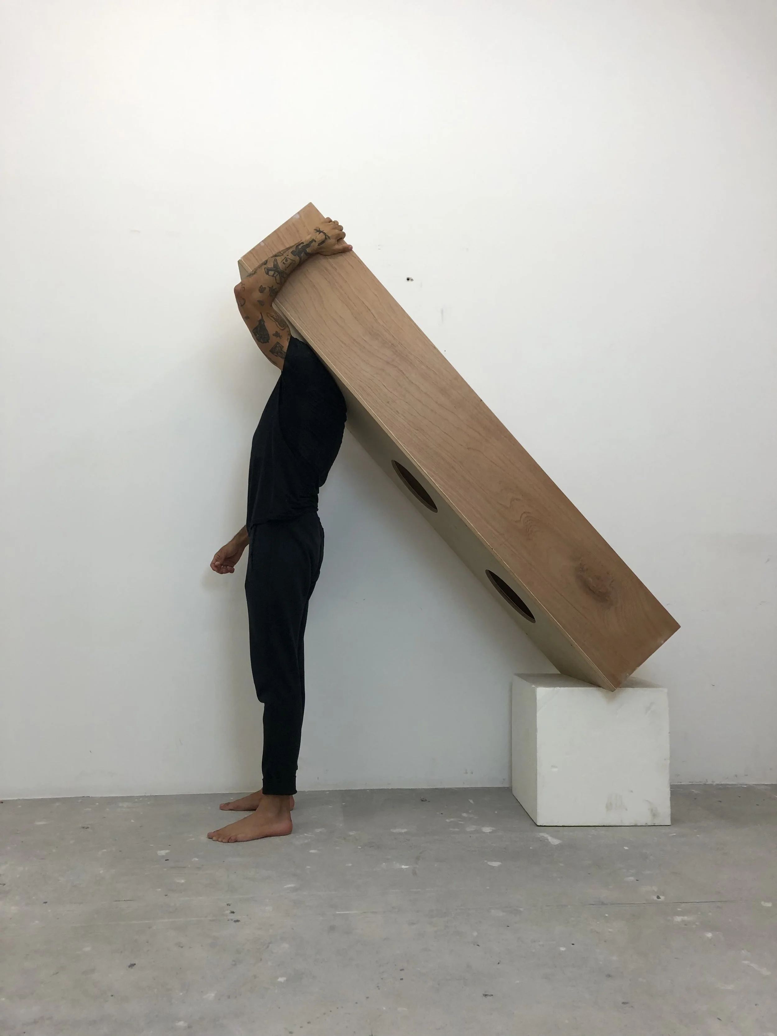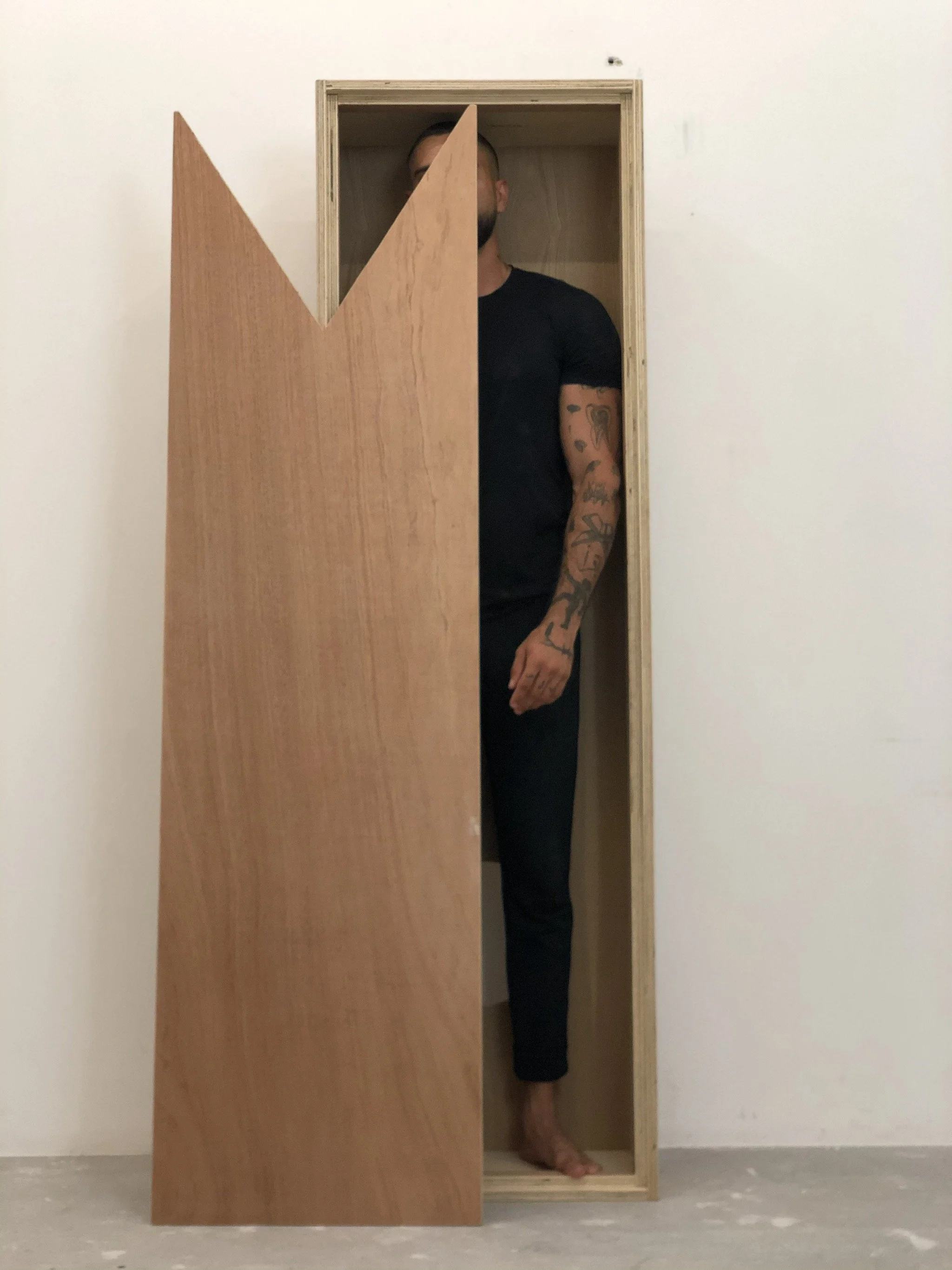 Wooden box with cut outs, to be worn over its carriers heads as they parade in mourning.