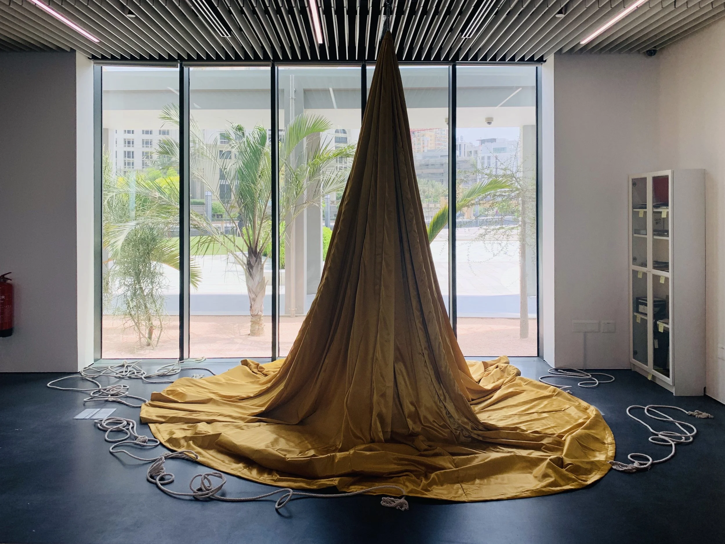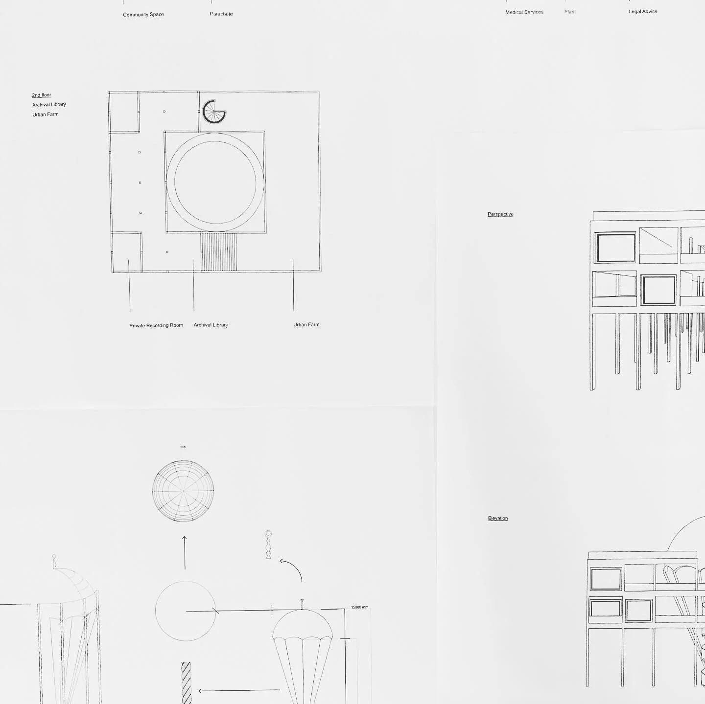 EOUP is a paper architecture installation that proposes a hypothetical organisation that works on providing relief for Palestinian Refugees residing outside of the PLO mandates or UNRWA jurisdiction. Hosted within a structure that mixes the iconography of the Dome of the Rock with the mechanism of parachuting in an architectural image that identifies its purpose as a body of aid to Palestinians.