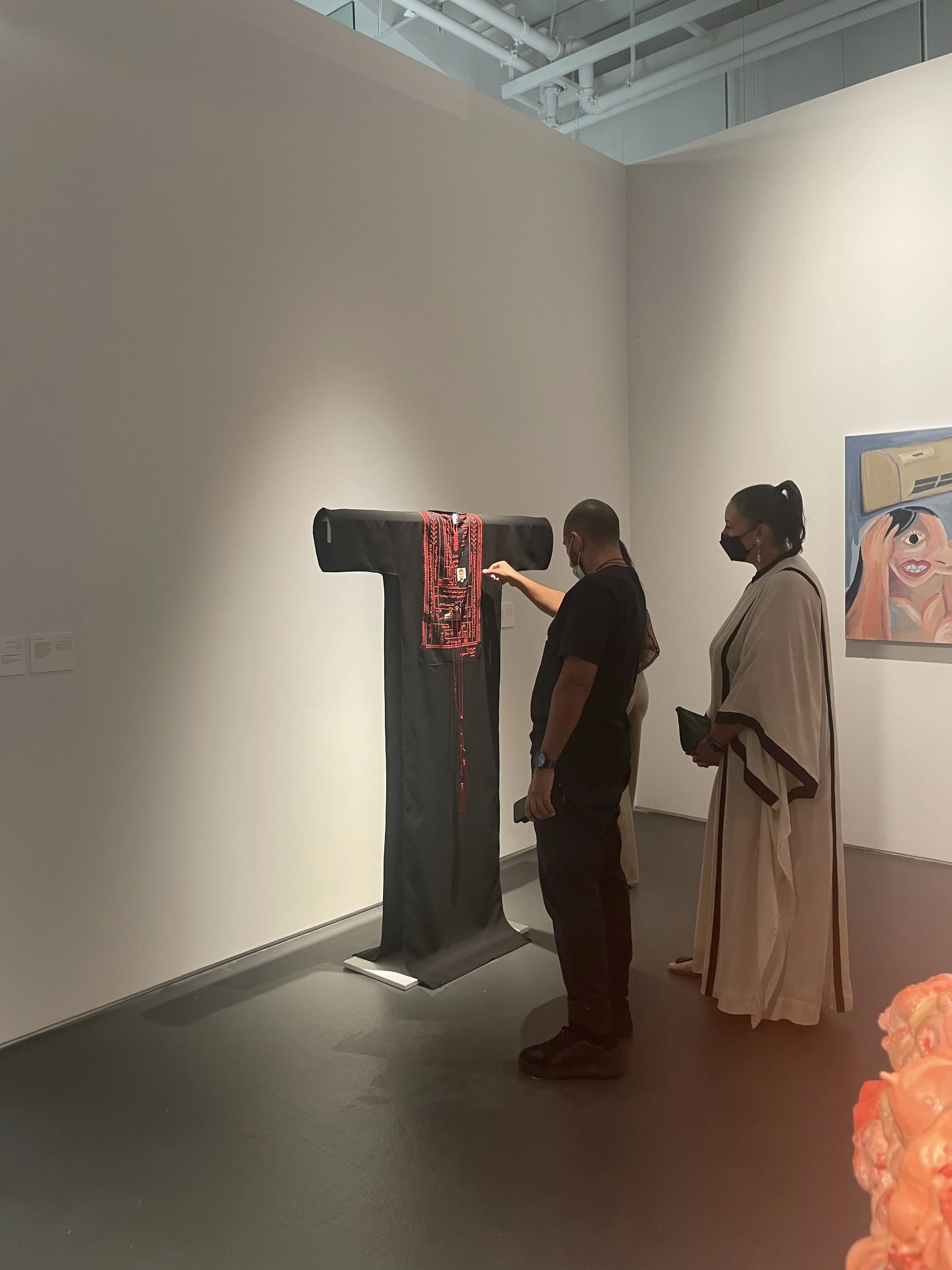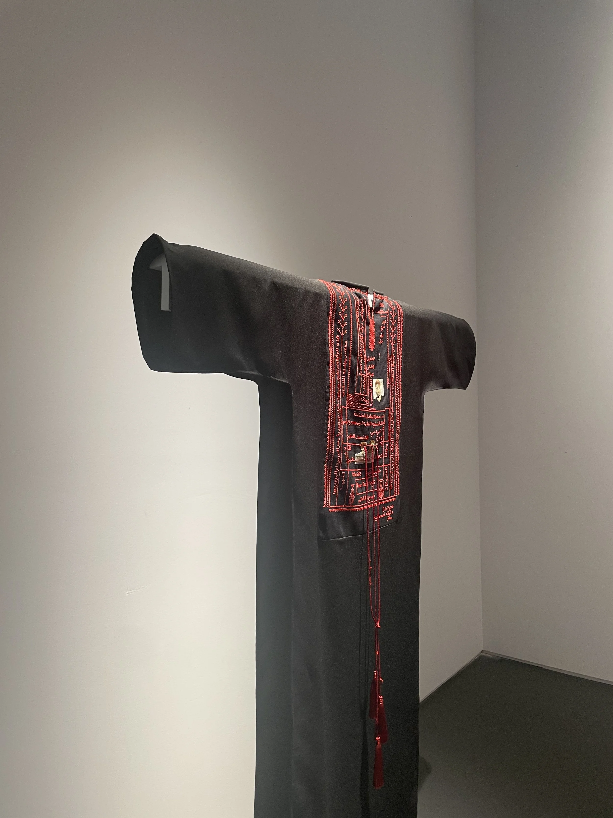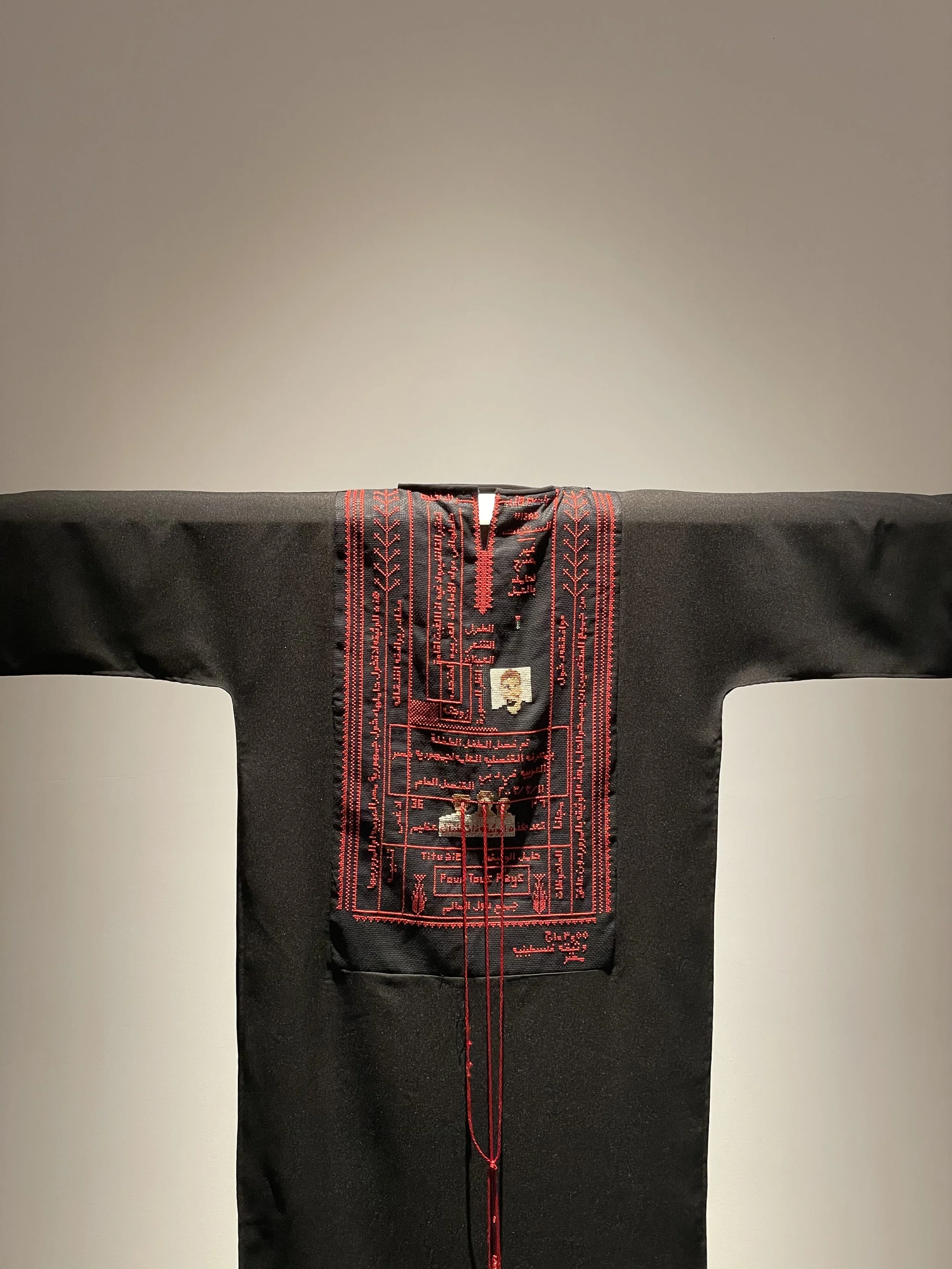 2019, Thobe.Cross embroidery thobe using refugee document information in place of traditional motifs. View fullsize View fullsize View fullsize Warehouse 421, Abudhabi